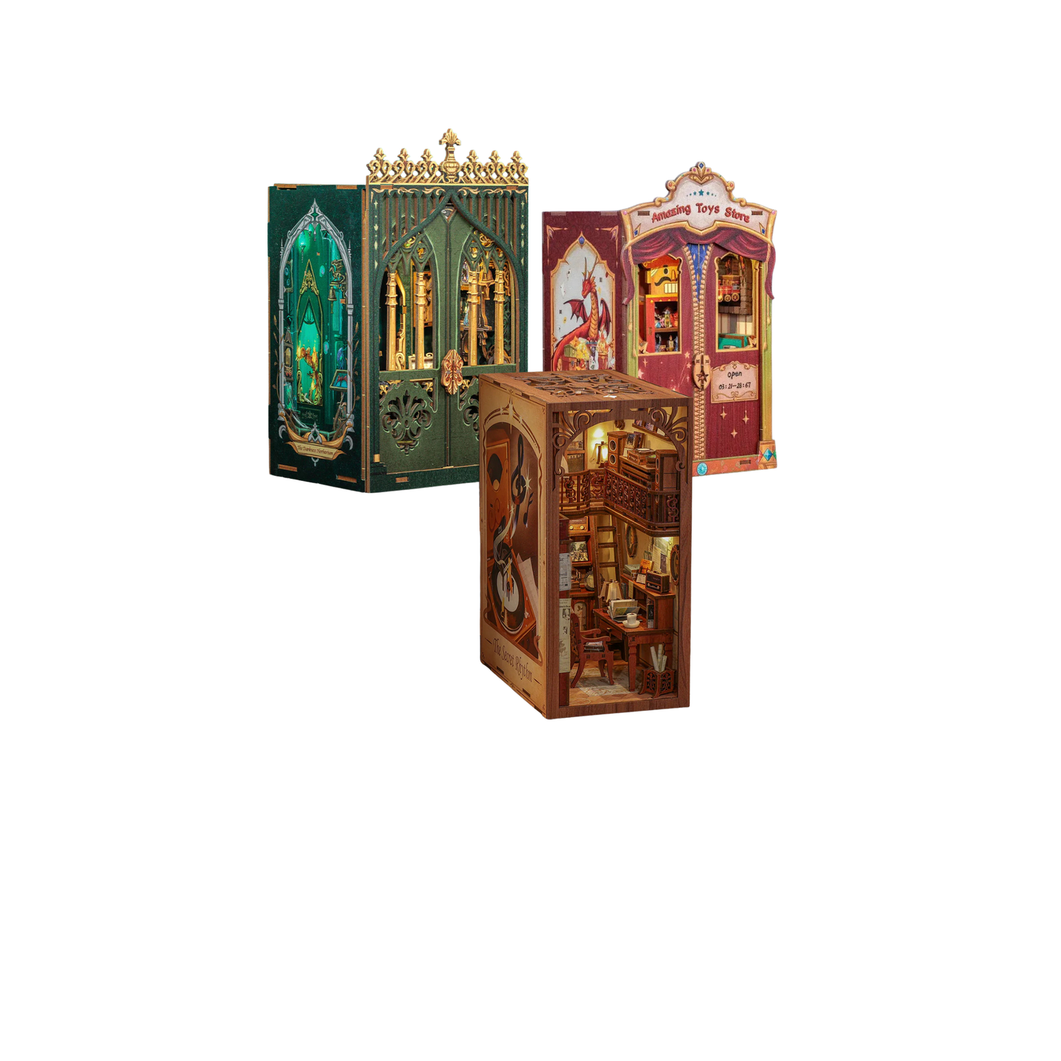 Chaque Book Nook raconte une histoire visuelle : une scène féerique, une ruelle japonaise, ou un atelier de détective inspiré des films classiques.