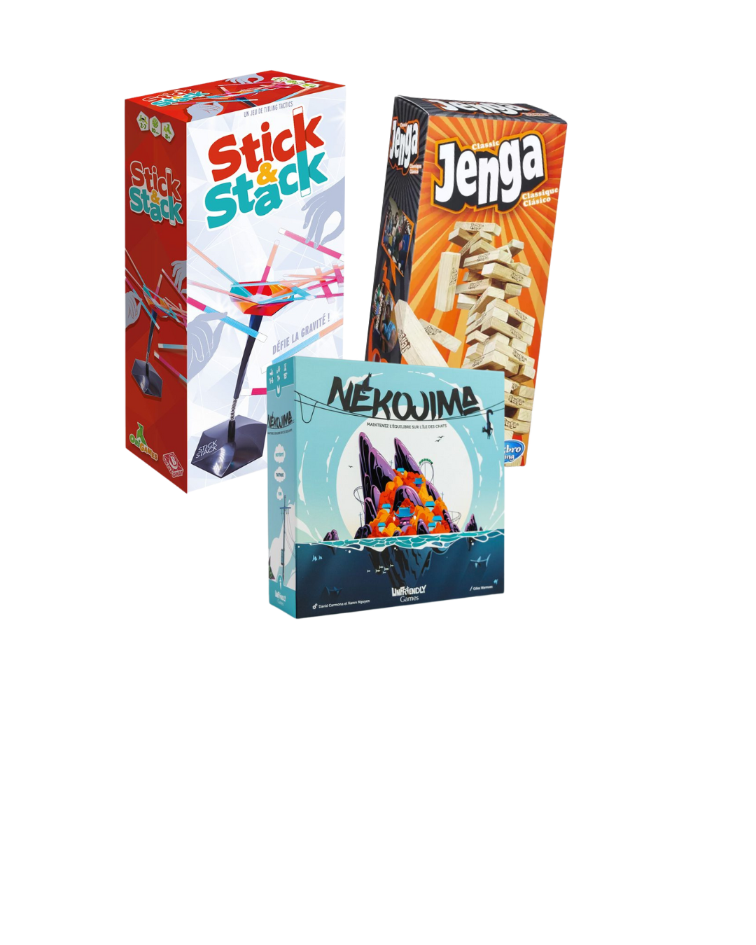 Les jeux d’équilibre sont au cœur de la catégorie jeux d’adresse. Chaque joueur doit empiler, déplacer ou équilibrer des pièces sans les faire tomber. Des classiques comme Jenga, Stick & Stack ou Katamino restent indémodables. Et plus récemment, Brick Like This de Lego. Chaque tour est une mise à l’épreuve où la moindre erreur entraîne la chute de la construction. Ce sont des jeux idéaux pour développer la patience, la précision et l’agilité.