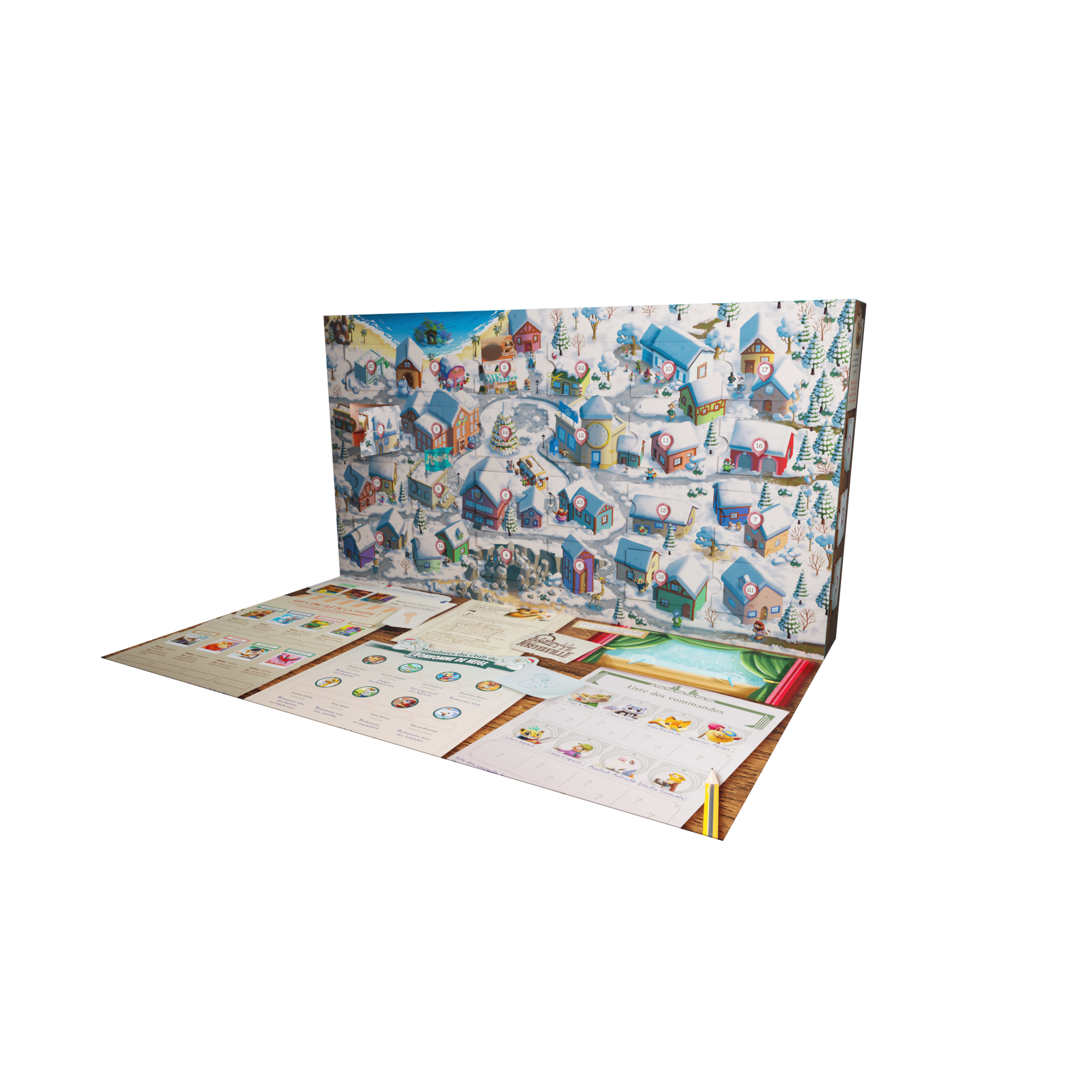 Ce calendrier-enquête propose une énigme quotidienne à résoudre en famille, avec des indices variés et du matériel original : filtres révélateurs, origamis secrets, puzzles atypiques et autres surprises ludiques. Un jeu coopératif plein de magie et d’imagination pour patienter jusqu’à Noël.