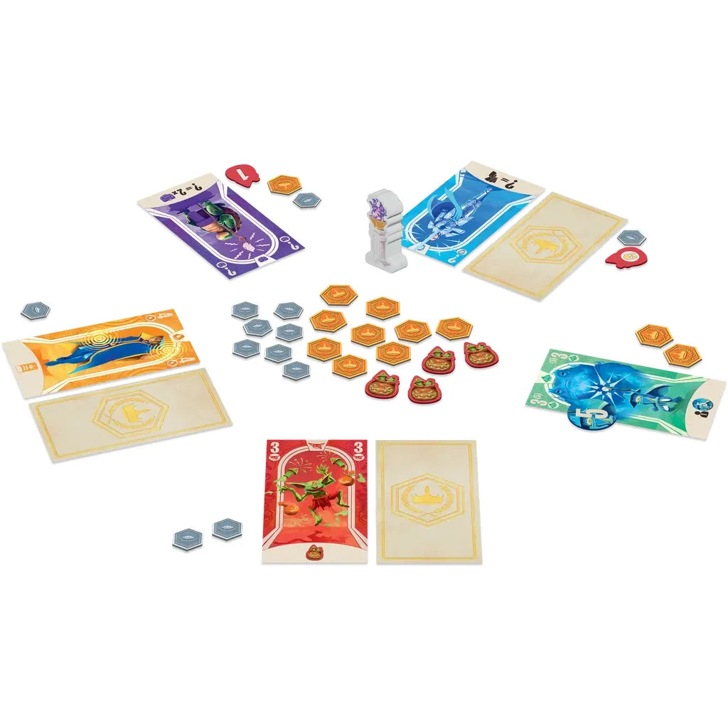 La mécanique du Double Choix et du Flambeau change tout. Vous ne choisissez jamais simplement la meilleure carte : vous gérez l'information visible, la carte cachée, l'ordre d'engagement et le ciblage. C'est un jeu psychologique autant que tactique.
