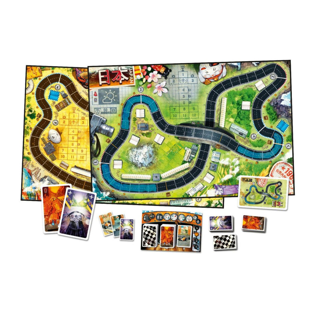 Partez pour une expérience de jeu encore plus intense avec Heat : Heavy Rain, une extension palpitante du jeu de société Heat. Découvrez deux nouveaux circuits spectaculaires : le Grand Prix du Japon, marqué par une pluie torrentielle et des flaques piégeuses qui mettent vos talents de pilote à rude épreuve, et le circuit du Mexique, réputé pour ses chicanes rapides demandant vitesse, précision et stratégie.
