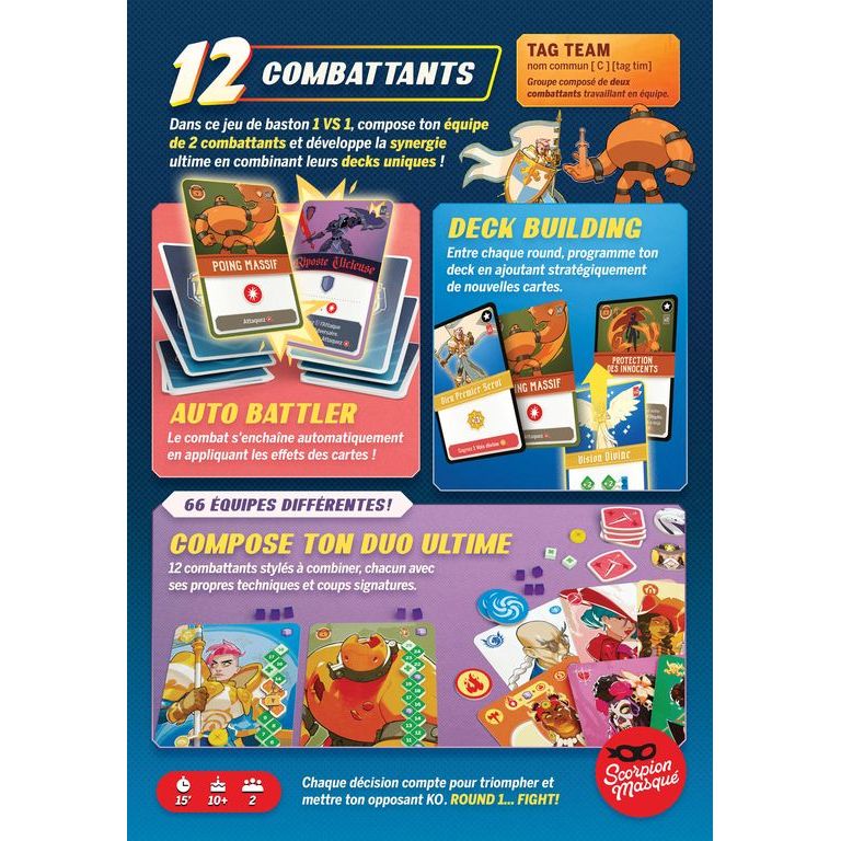 Tag Team est un jeu de baston à 2 joueurs qui mélange habilement l’auto-battler et le deckbuilding. Inspiré des plus grands jeux de combat d’arcade, il vous plonge dans des duels explosifs où stratégie, timing et anticipation feront la différence.